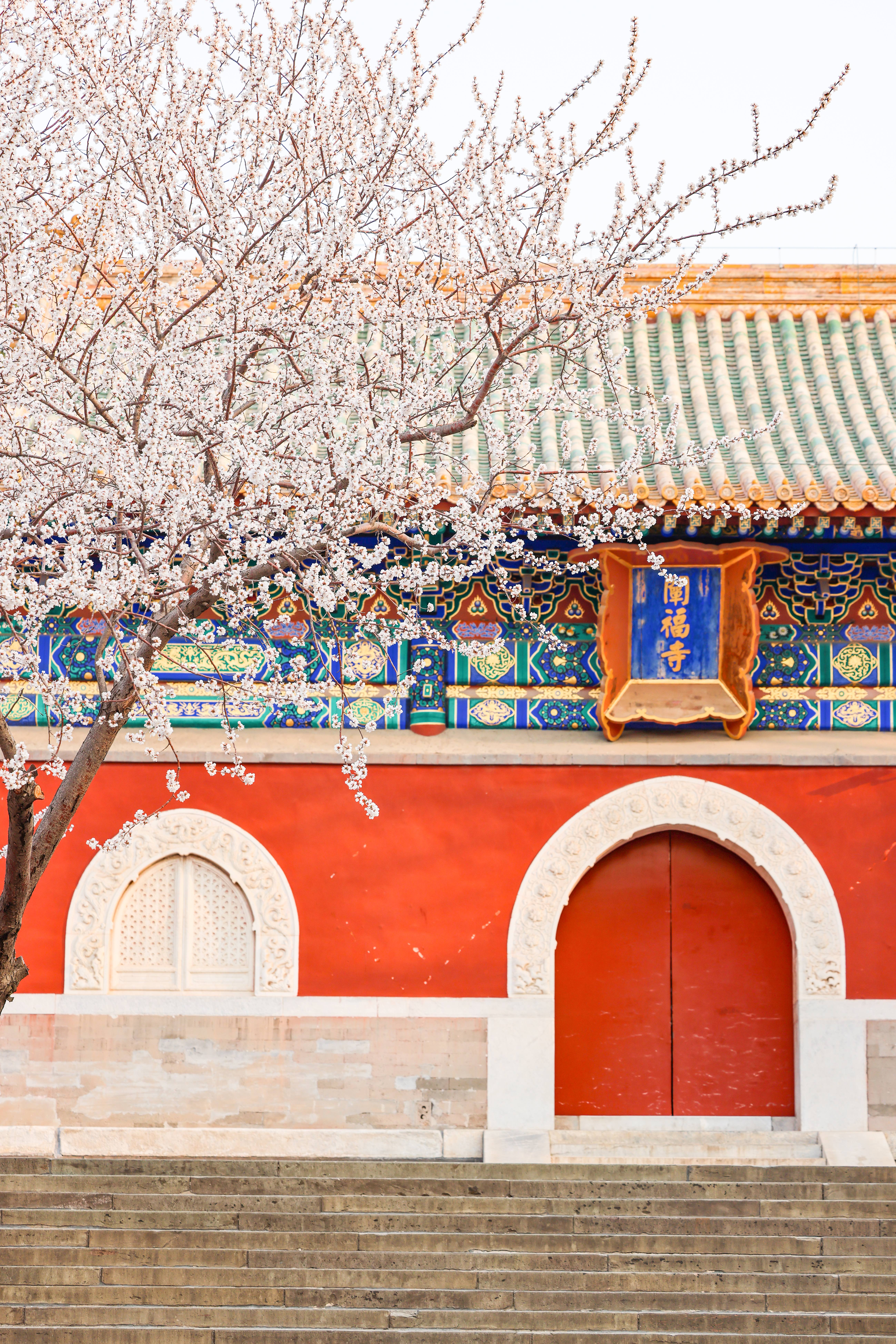 On March 22, mountain peach blossoms are in full bloom at Chanfu Temple in Beihai Park, Beijing. Photo by Cao Xuewen