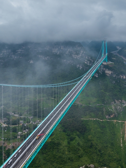 Straddling the border between Guanling and Zhenfeng counties in Guizhou, the Huajiang Grand Canyon Bridge arches over the Huajiang Grand Canyon, dubbed the "Earth's Fissure" by geologists. With its deck soaring 625 meters above the water surface and a main span of 1,420 meters, the bridge currently holds the world records for both height and span.
