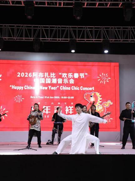 From Jan. 30–31, the "Happy Chinese New Year" China Chic Concert was held at the Sheikh Zayed Festival in Abu Dhabi, UAE, celebrating the Year of the Horse. The program presented classic Chinese folk compositions and showcased inventive fusions of traditional instruments with modern electronic sounds. Selections such as "Dance of the Golden Snake," "Horse Racing," and "Great Tang Dynasty" highlighted the depth of China's musical heritage, while a contemporary adaptation of "The New Ambush from All Sides" demonstrated modern reinvention of traditional timbres. A medley spanning diverse styles further energized the audience with vibrant appeal.