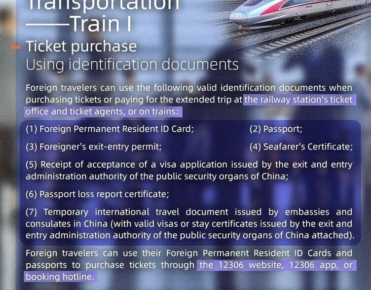 Book tickets in advance: High-speed rail tickets are in high demand during holidays. Plan your trip early and book as soon as possible. Tickets generally become available up to 15 days in advance. Verify your ID information accurately: When booking online, ensure that the name and passport number you enter exactly match your travel documents. The 12306 system does not allow spaces or hyphens ("-") in the name field, and the character length may be limited. For example, a passport name like "